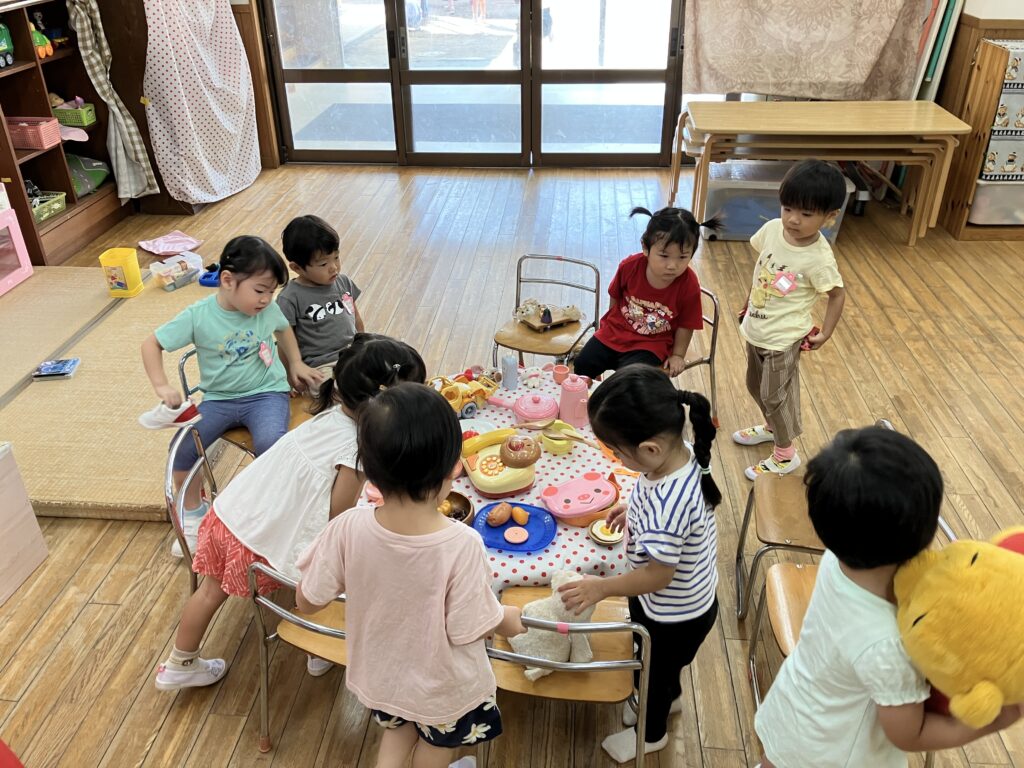 内容:室内遊び、外遊び、おやつ、絵本、簡単な製作、手遊び、歌など